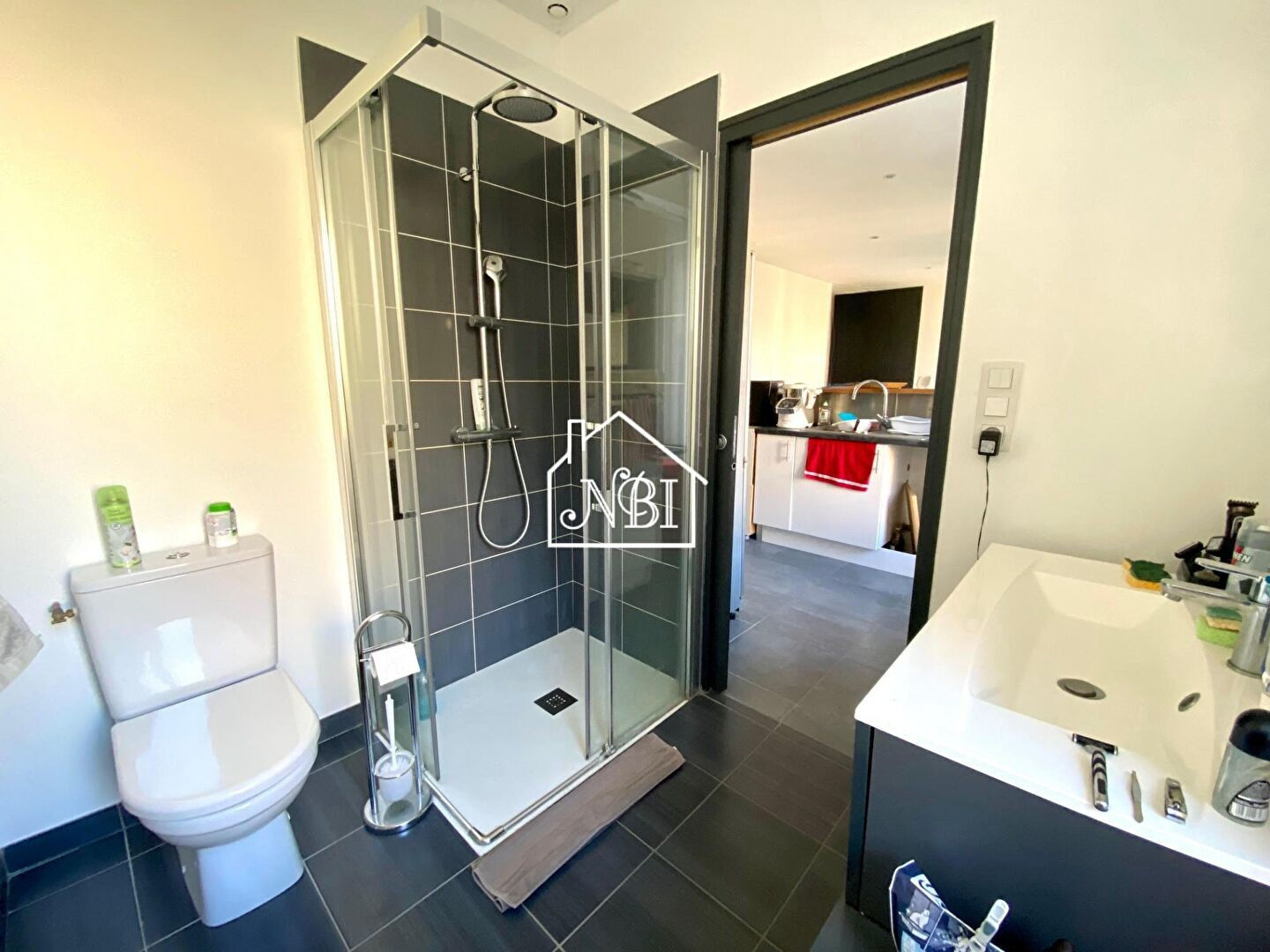 Il comprend : entrée avec emplacement lave linge, pièce de vie (30m2 au total) ouverte sur cuisine aménagée et équipée (plaque, hotte, réfrigérateur et four fournis), salle d’eau avec WC et chambre (13 m2) avec grand placard/dressing.